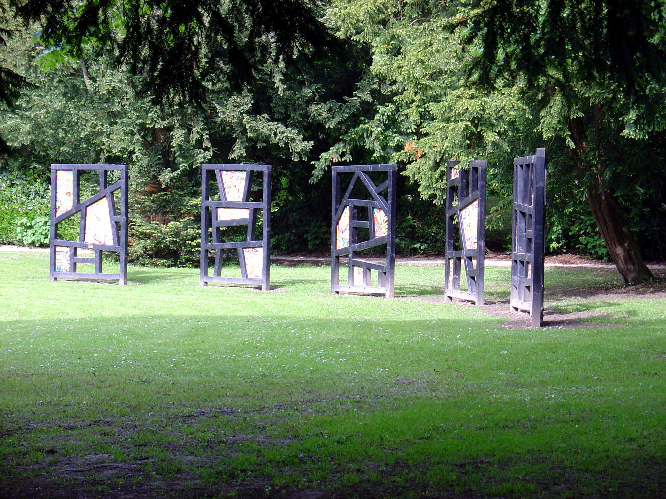 Im Hachenburger Burggarten finden sich inmitten bemerkenswerter alter Bäume einige zeitgenössische Holzskulpturen. Sie entstanden u.a. im Rahmen eines 1999 veranstalteten Motorsägenschnitzer-Workshops, bei dem einigen abgestorbenen alten Bäumen eine neue Gestalt abgerungen und neues Leben eingehaucht wurde. Eine Dokumentation des Ereignisses findet sich auf der unten erwähnten Homepage des Motorsägenschnitzers Dieter Piroth, von dem auch die abgebildete Försterskulptur stammt.