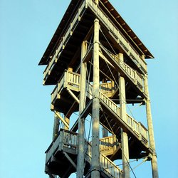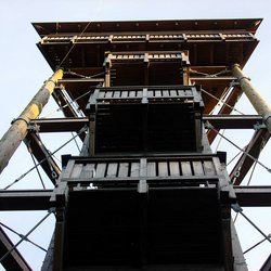 Die Steineberger Vulcano Info Plattform wurde mit unbehandeltem Douglasienholz errichtet. Die drei Hauptstützen aus Rundholz mit einem Rauminhalt von 11 Festmetern stammen von 110 Jahre alten Bäumen und sind eine Spende von Landesforsten Rheinland-Pfalz. Insgesamt wurden 33 Kubikmeter Holz verbaut. Der Turm weist eine Firsthöhe von 28 m auf. Die Aussichtsplattform ist in 24 m Höhe errichtet.